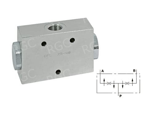 Делитель потока серии DFL делит входной поток на две равные части и объединяет два потока при движении жидкости в обратном направлении. Используются, когда два эквивалентных привода, не связанные механически, питающиеся от одного насоса и управляющие одним устройством, должны перемещаться одновременно.
