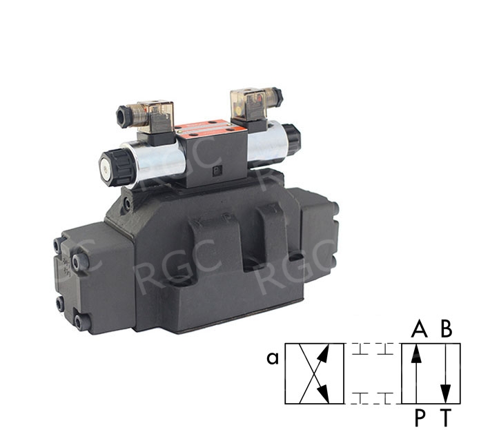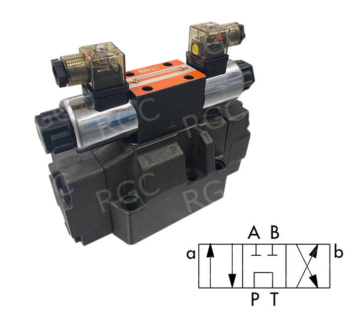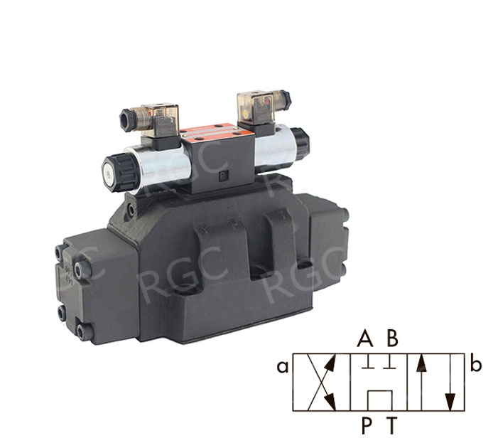 Двухкаскадный гидрораспределитель серии RG-DCН-08 на 220В постоянного тока с электрогидроуправлением. Предназначены для установки на монтажную плиту стандарта СЕТОР 08.