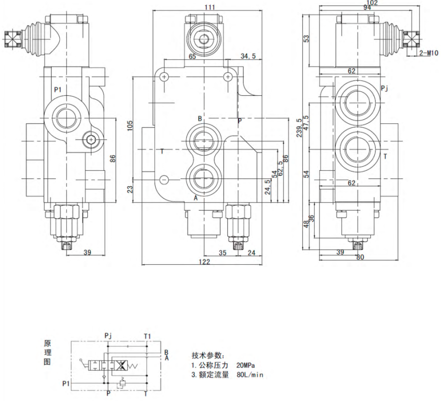 Моноблочный гидрораспределитель серии Р80 с ручным управлением предназначен для контроля за распределением и расходом рабочей жидкости. Конструктивно данный тип распределителей выполнен в литом монолитном корпусе, с предохранительным клапаном, от 1 до 6 рабочих секций. Номинальный расход данного типа гидравлического распределителя — 80 л/мин.