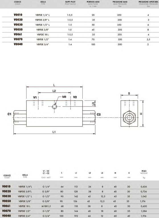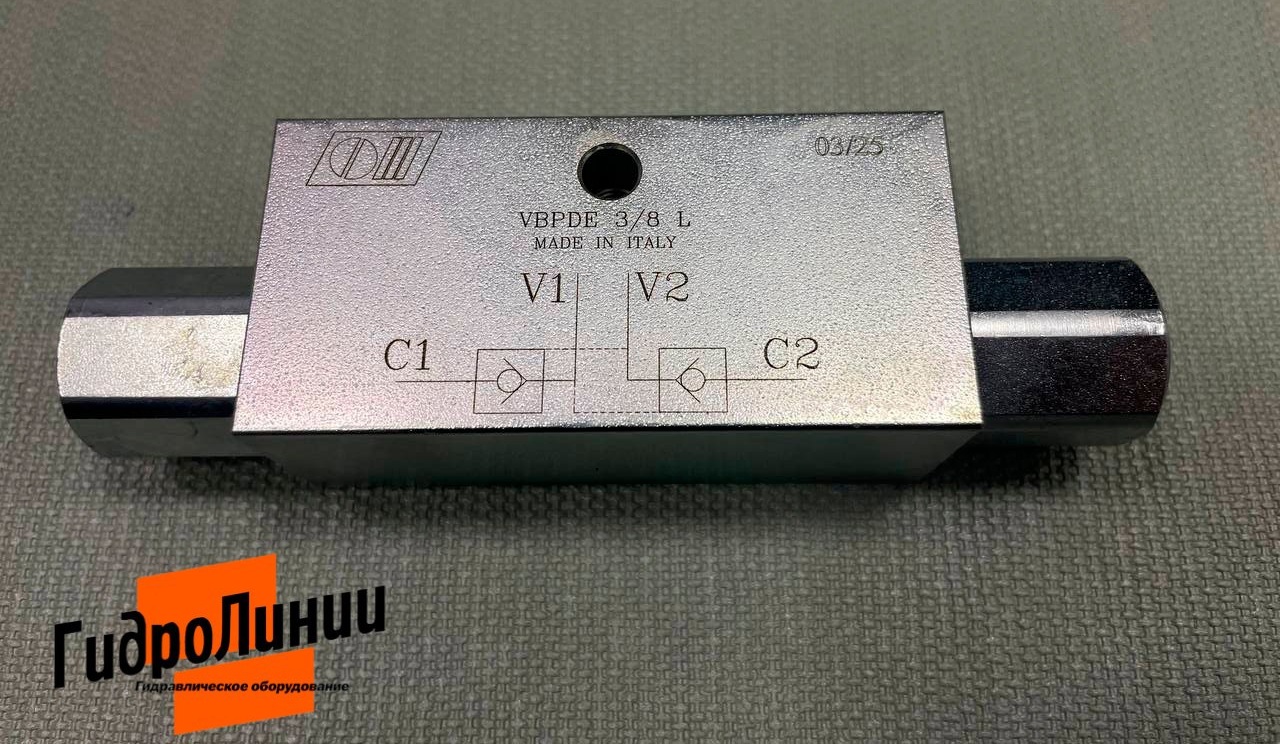 Стандартный двухсторонний гидрозамок с отверстиями для подключения по двум перпендикулярным плоскостям корпуса. При отсутствии управляемого потока на гидроцилиндр – гидрозамок удерживает гидроцидиндр в двух направлениях линейного движения: «подъём» и «опускание». При подаче управляемого сигнала на гидроцилиндр – гидрозамок открывает полости основных каналов и поток свободно попадает в нужную полость цилиндра и тот, начинает линейное движение.
