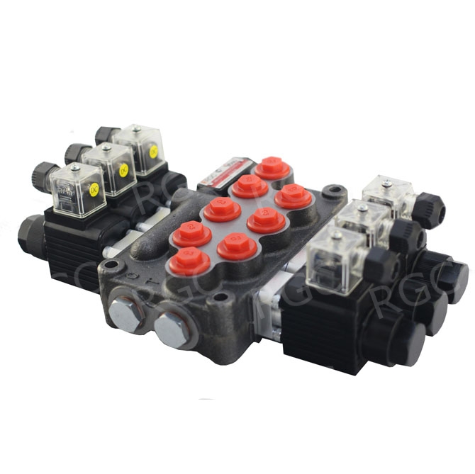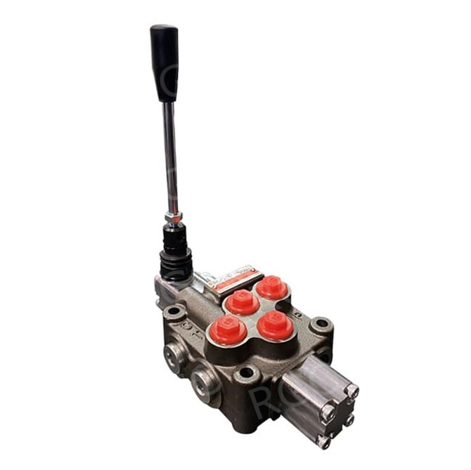 Моноблочные гидрораспределители серии MB-3. Монолитный корпус с предохранительным и обратным клапанами, от 1 до 6 рабочих секций. Управление: ручное, тросовое, электрическое и прочее. Расход — 45 л/мин, рабочее давление — 250 бар.